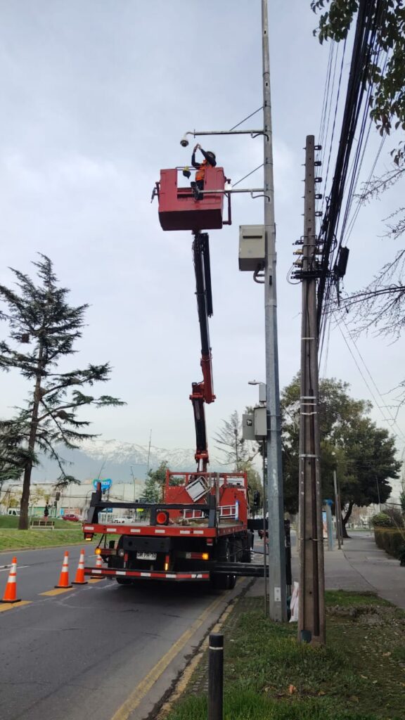 La instalación de cámaras con camión grúa pluma permite ejecutar esta tarea de forma controlada, especialmente en zonas urbanas con tránsito vehicular donde se requiere un despliegue rápido y preciso.