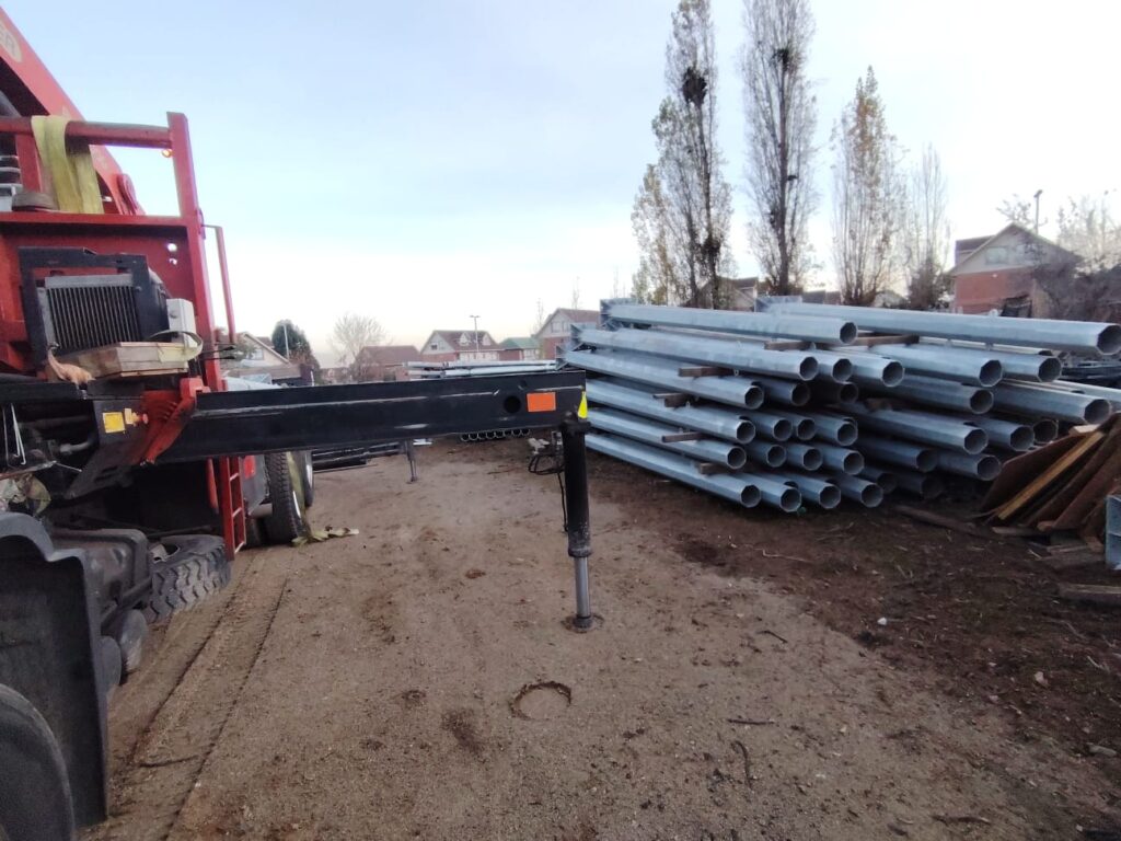 Lo primero es retirar el poste desde el centro de acopio, para ello Grúas Palotte coordina con el equipo logístico su retiro. A continuación se procede a cargar el camión utilizando la grúa hidráulica, y a asegurar el poste con eslingas, cadenas y elementos de sujeción certificados.